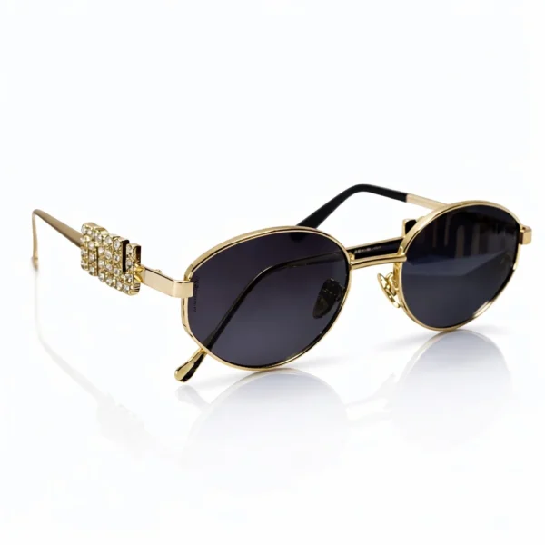 التفاصيل الجانبية المرصعة بالكريستال تعكس ذوقًا راقيًا وتضيف لمسة فخامة واضحة، لتكون هذه النظارة الخيار المثالي للمرأة التي تحب التميز في كل تفاصيلها.